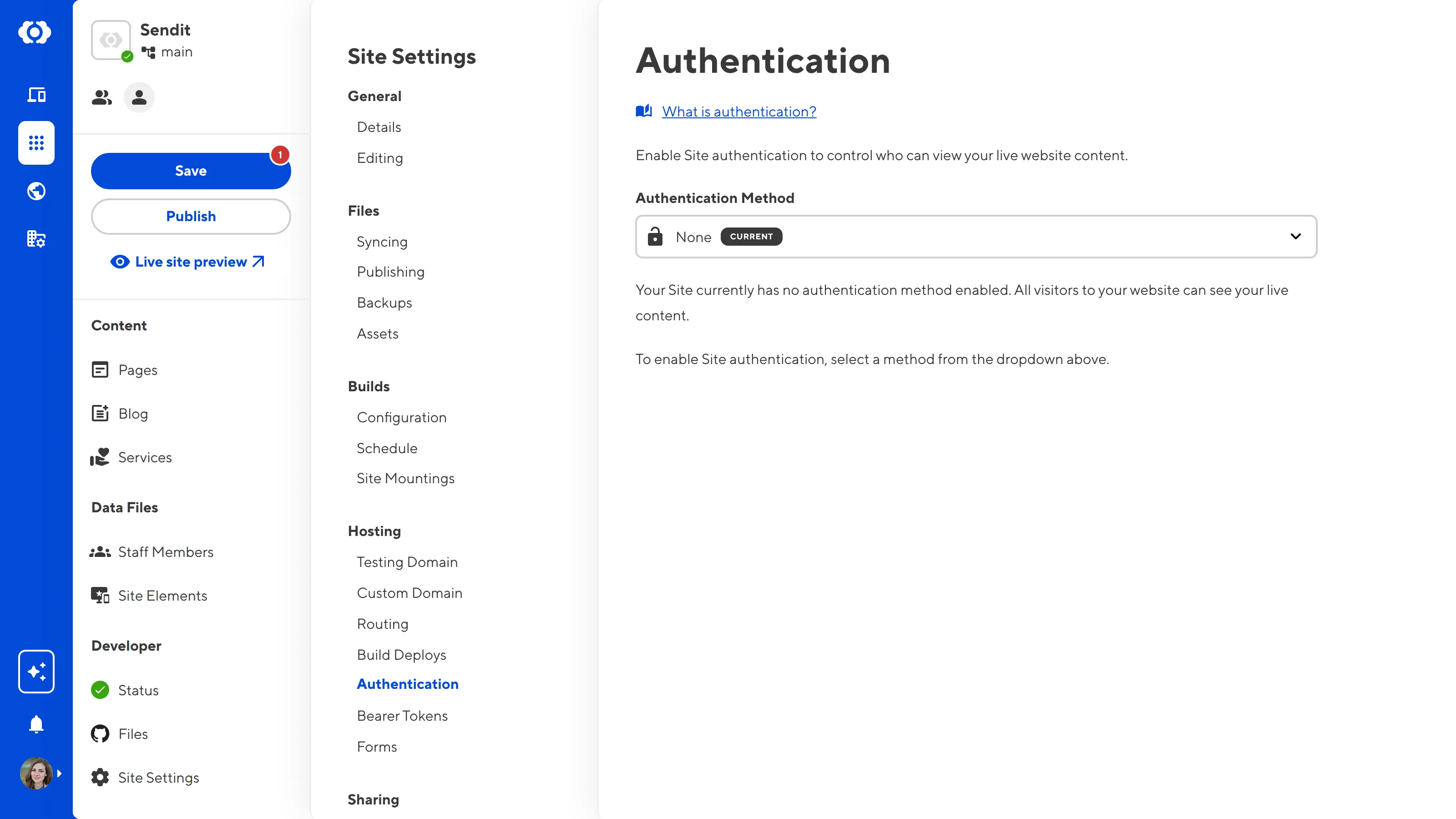 Authentication is the process of verifying a user's identity. When you host your Site on CloudCannon, you can enable an authentication method to control who is allowed to see the live content of your website.